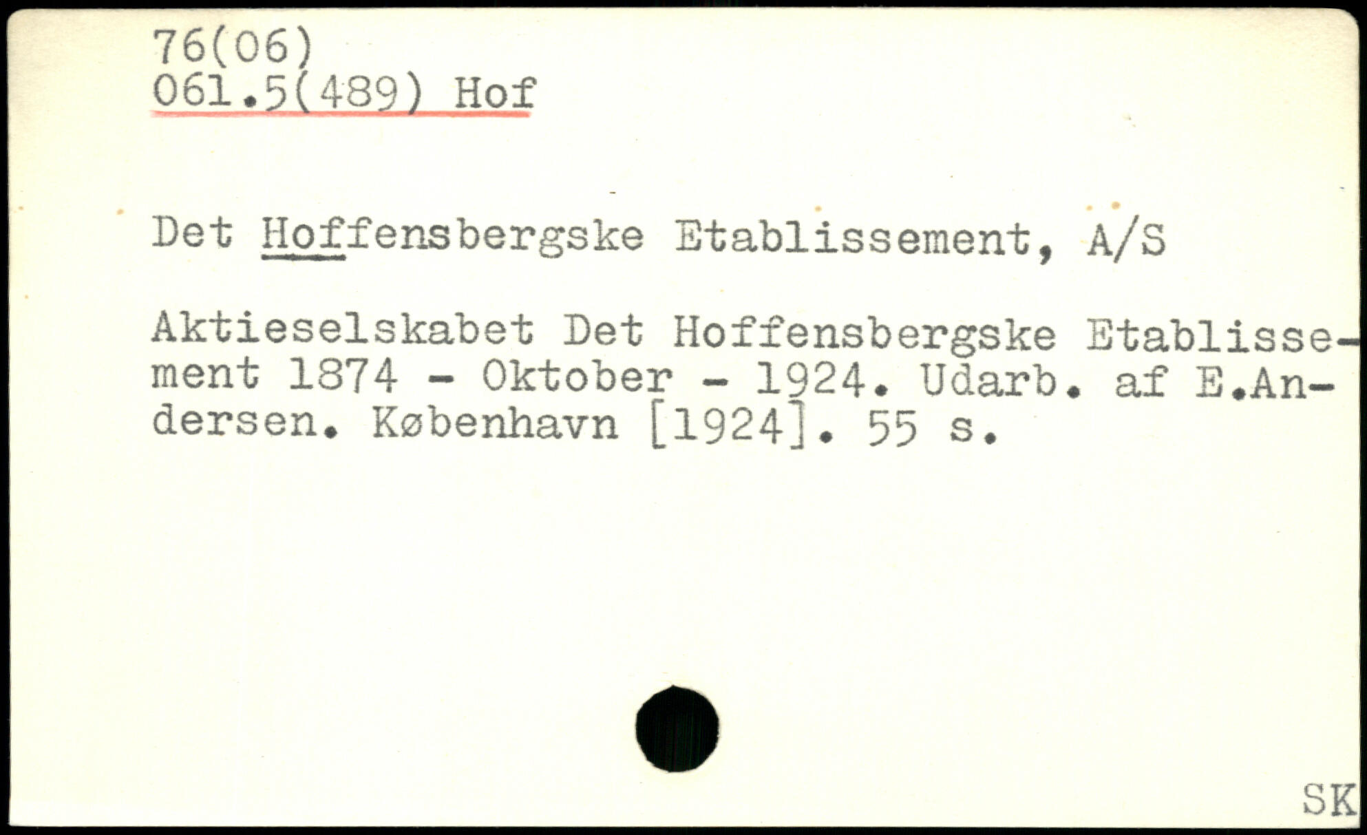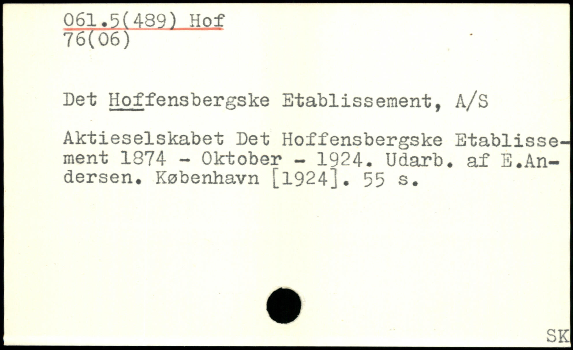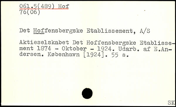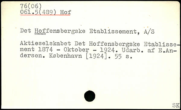 Det Hoffensbergske Etablissement, A/S Aktieselskabet Eet Hoffensbergske Etablissement 1874 - Oktober - 1924. Udarb. af E♦Andersen.