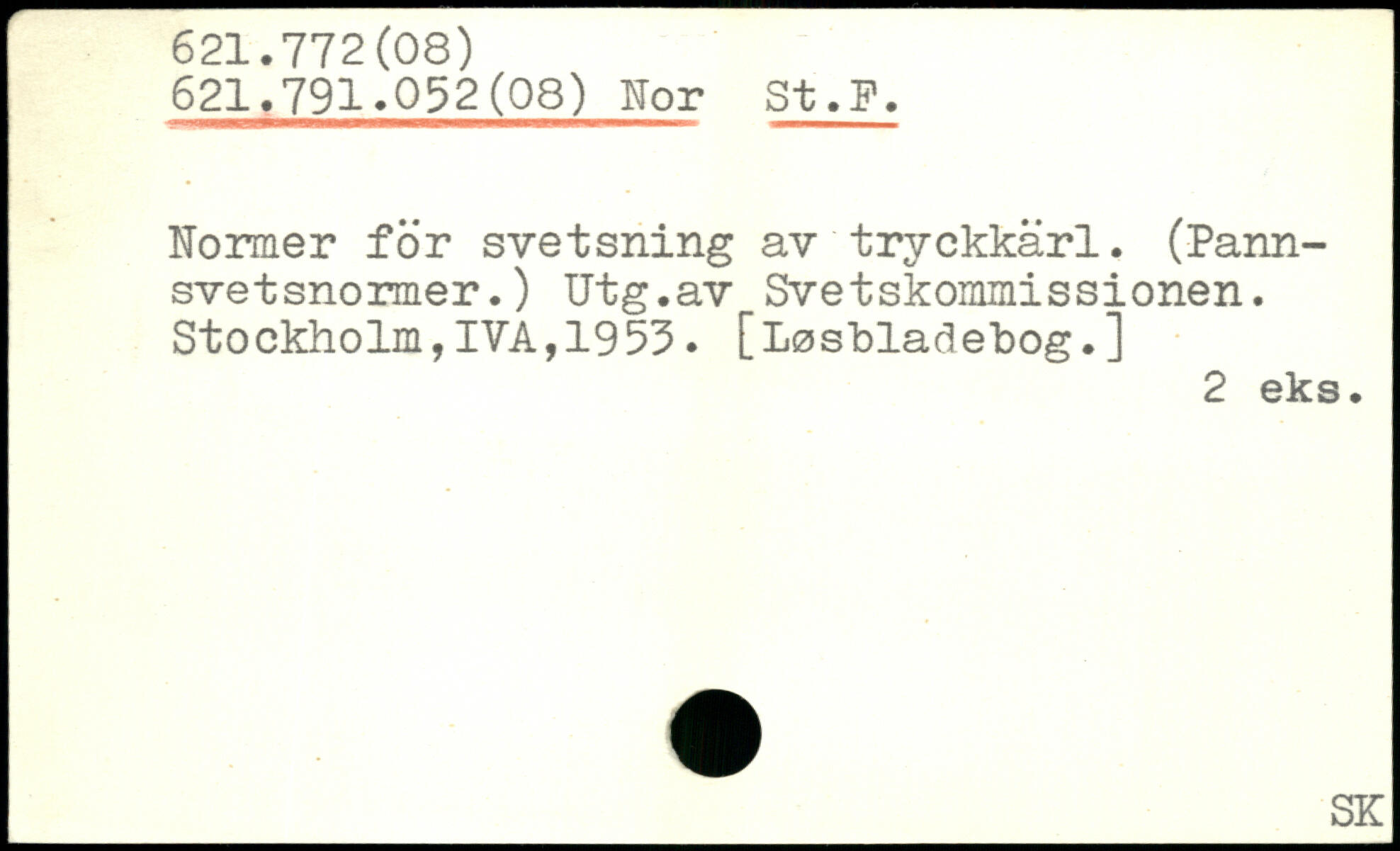 Normer för svetsning av tryckkärl. (Pann-svetsnormer.) Utg.av Svetskommissionen.