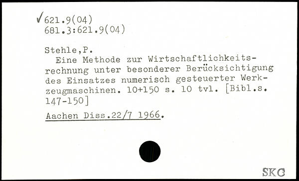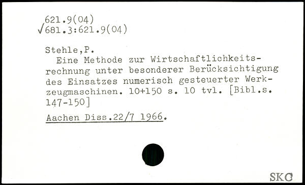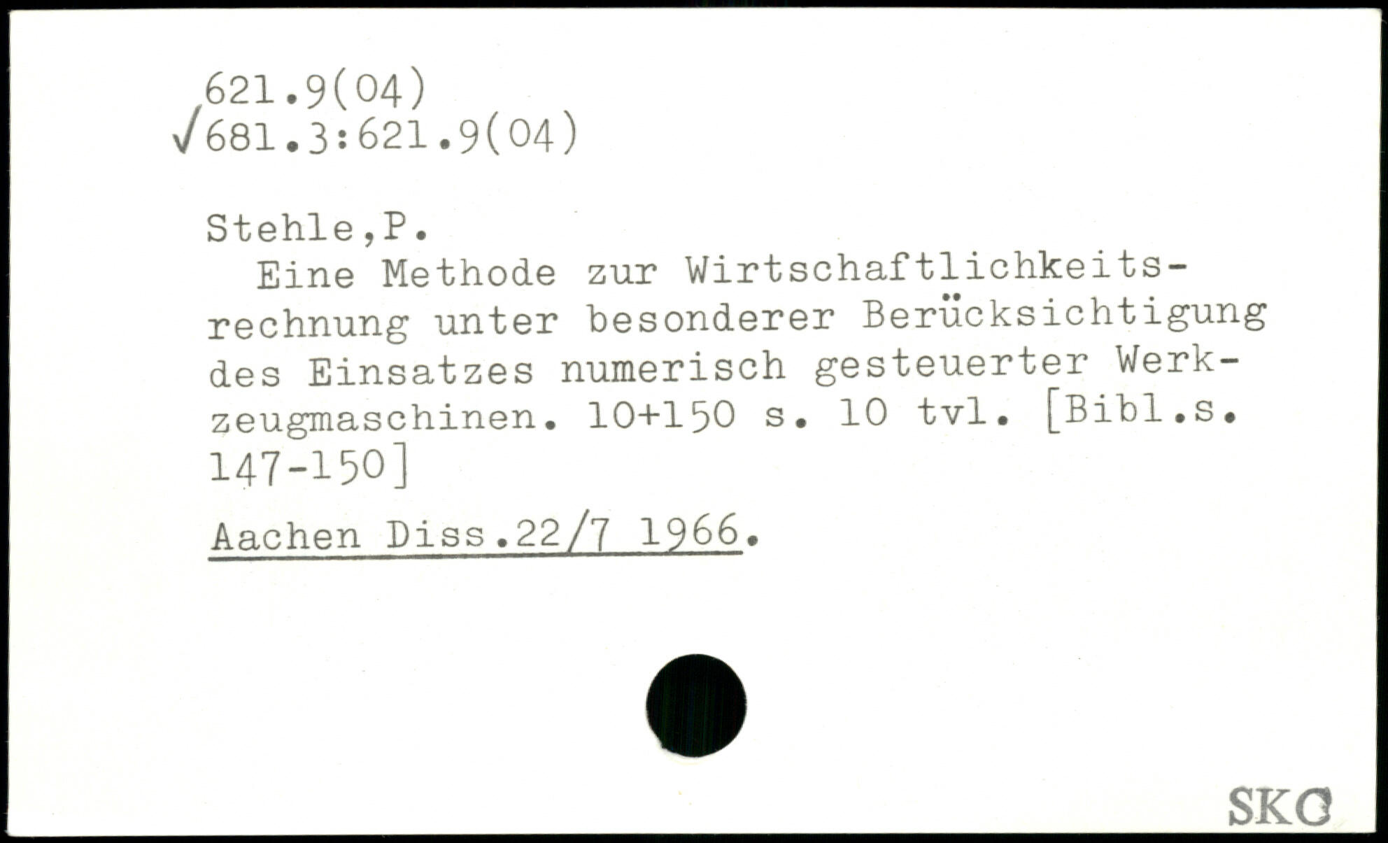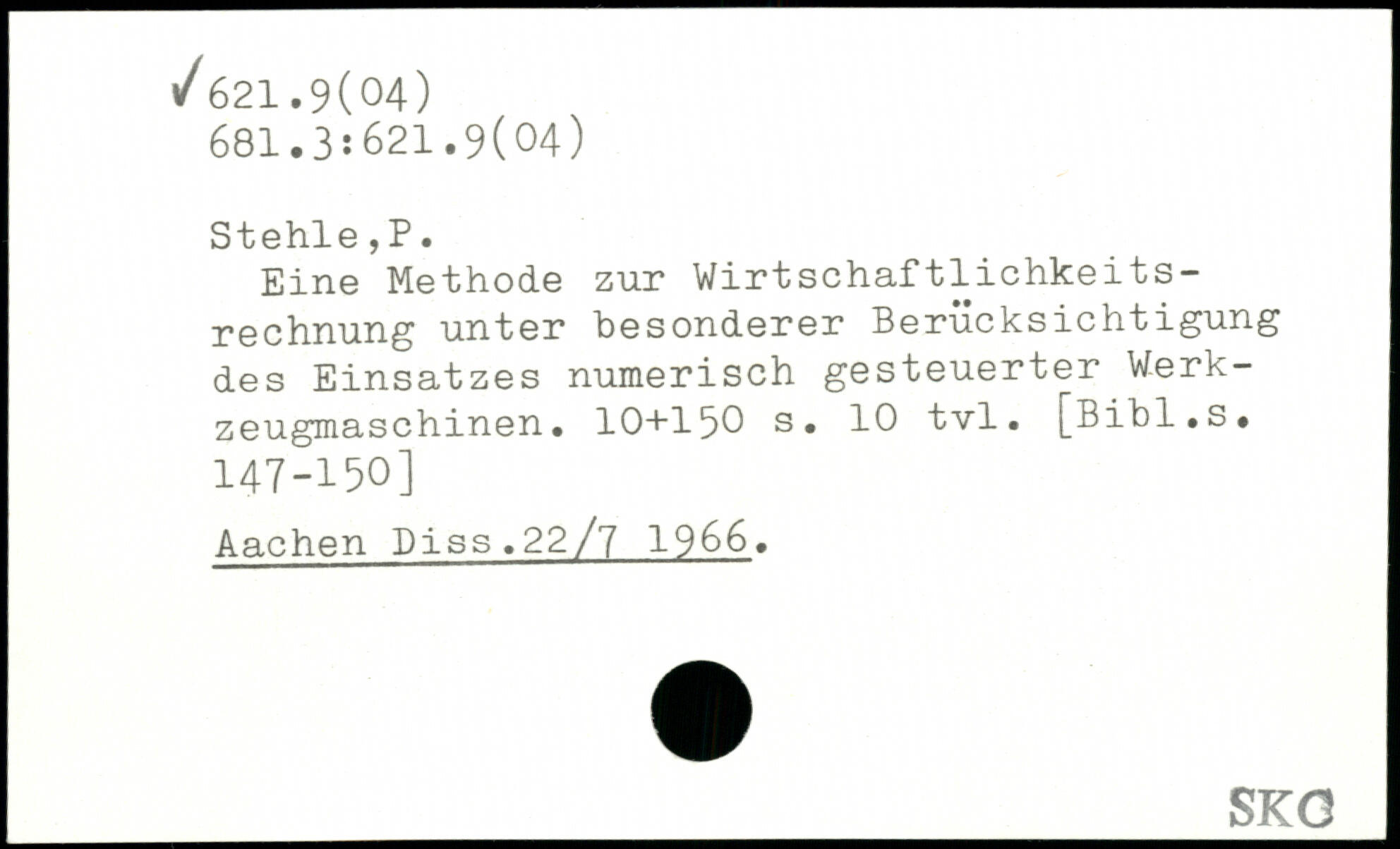 Eine Methode zur Wirtschaftlichkeitsrechnung unter besonderer Berücksichtigung des Einsatzes numerisch gesteuerter Werkzeugmaschinen.