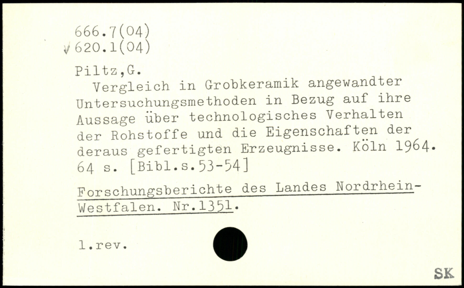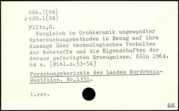 Vergleich in Grohkeramik angewandter Untersuchungsmethoden in Bezug auf ihre Aussage über technologisches Verhalten der Rohstoffe und die Eigenschaften der deraus gefertigten Erzeugnisse.