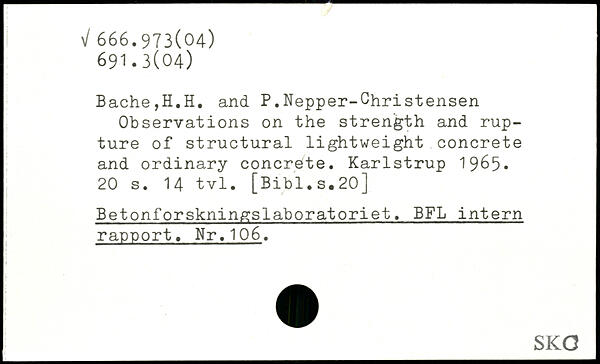 Bache,H.H. and P.Nepper-Christensen Observations on the strength and rupture of structural lightweight concrete and ordinary concrete. Karlstrup 1965.