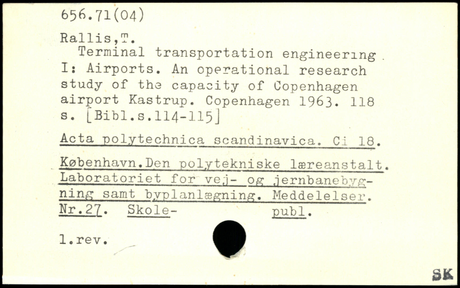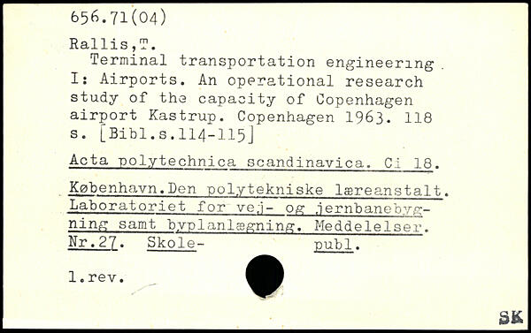 Terminal transportation engineering. I: Airports. An operational research study of the capacity of Copenhagen airport Kastrup.
