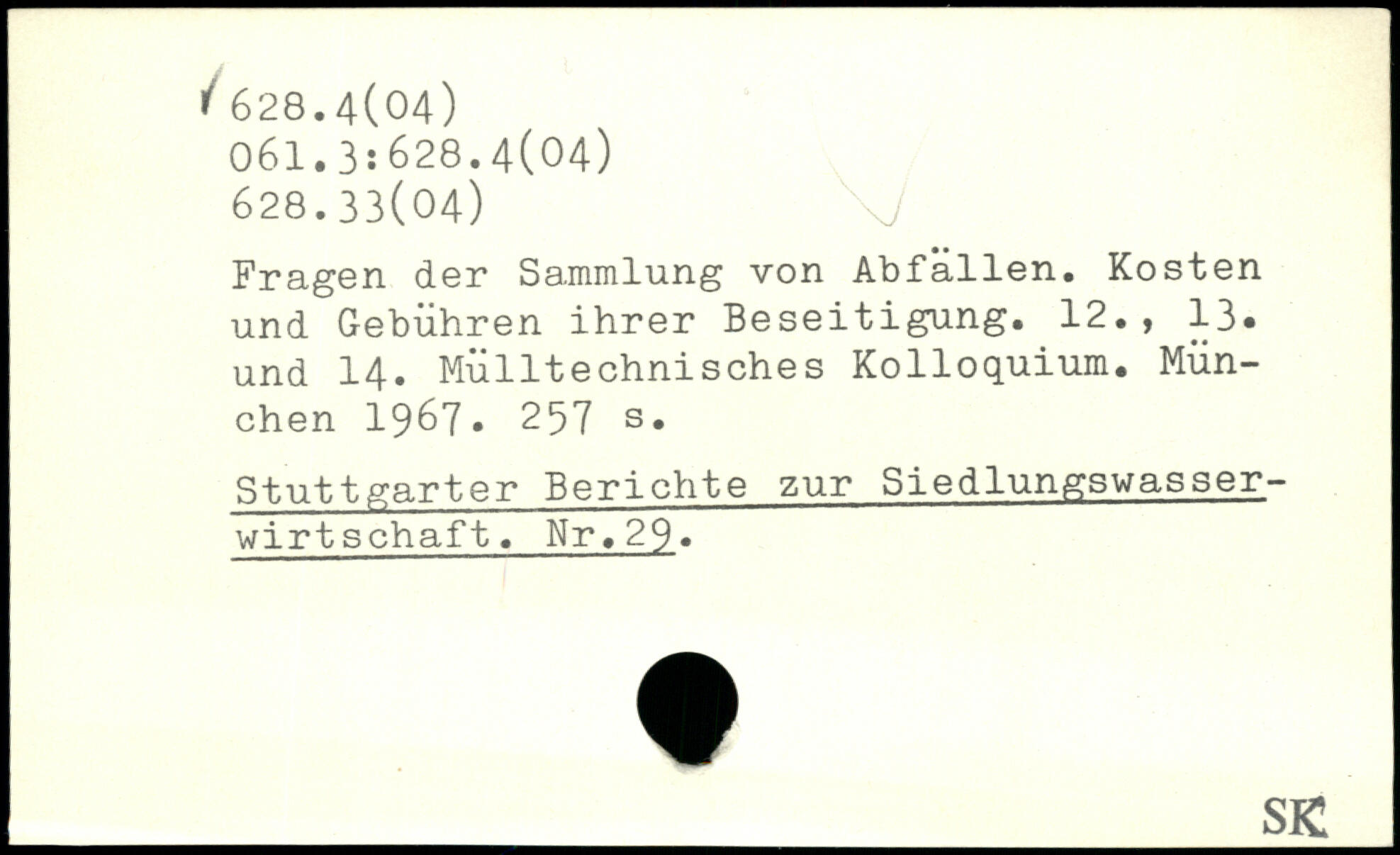 Fragen der Sammlung von Abfällen. Kosten und Gebühren ihrer Beseitigung. 12., 13, und 14. Mülltechnisches Kolloquium.