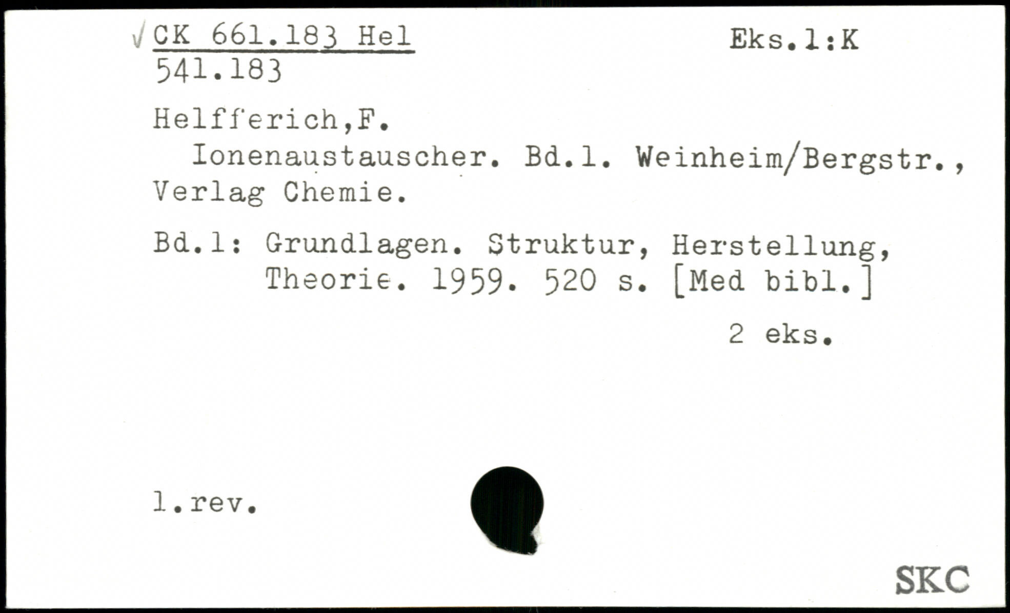 Helfi'erich ,F. Ionenaustauscher. Bd.l. Weinheim/Bergstr., Verlag Chemie. Bd.l: Grundlagen. Struktur, Herstellung, Theorie. 1959.