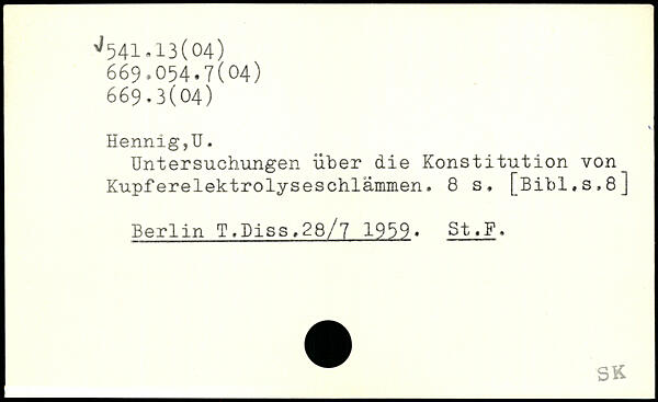 Untersuchungen über die Konstitution von Kupferelektrolyseschlämmen.