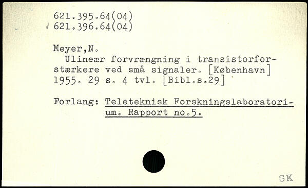 Ulineær forvrængning i transistorforstærkere ved små signaler.