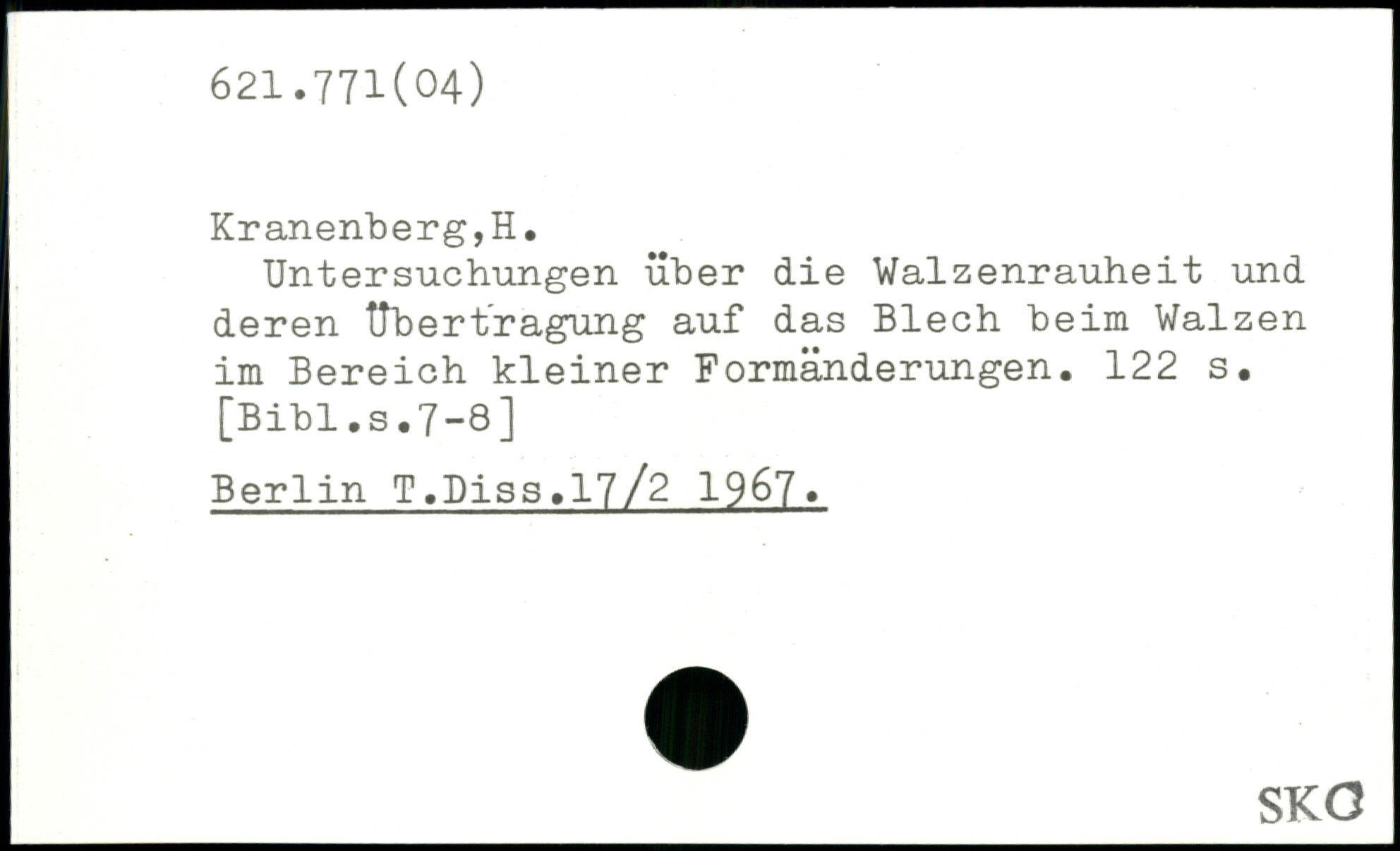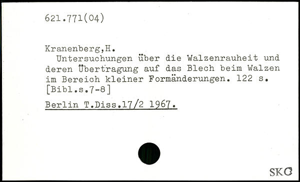 Untersuchungen über die Valzenrauheit und deren Übertragung auf das Blech beim Walzen im Bereich kleiner Formänderungen.