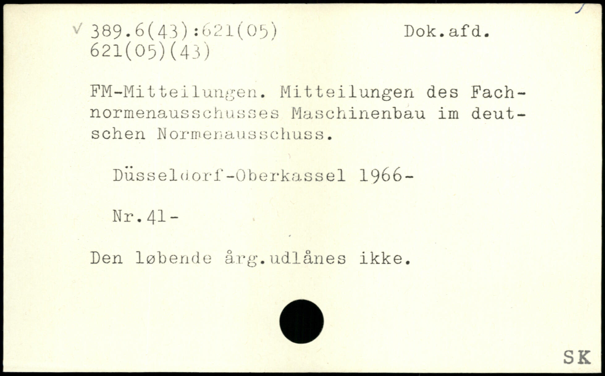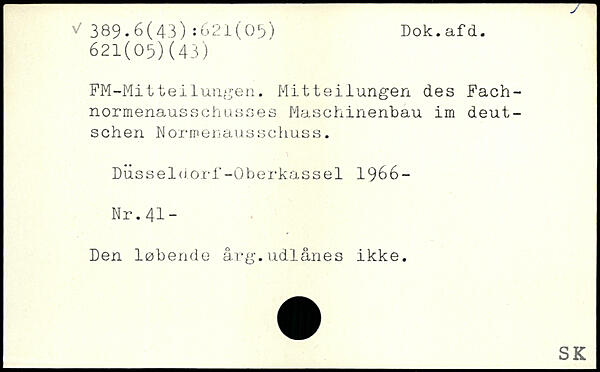 FM-Mitteilungen. Mitteilungen des Fach-normenausschusses Maschinenbau im deutschen Normenausschuss. Düsseldorf-Oberkassel 1966- Nr.41- Den løbende årg.udlånes ikke.