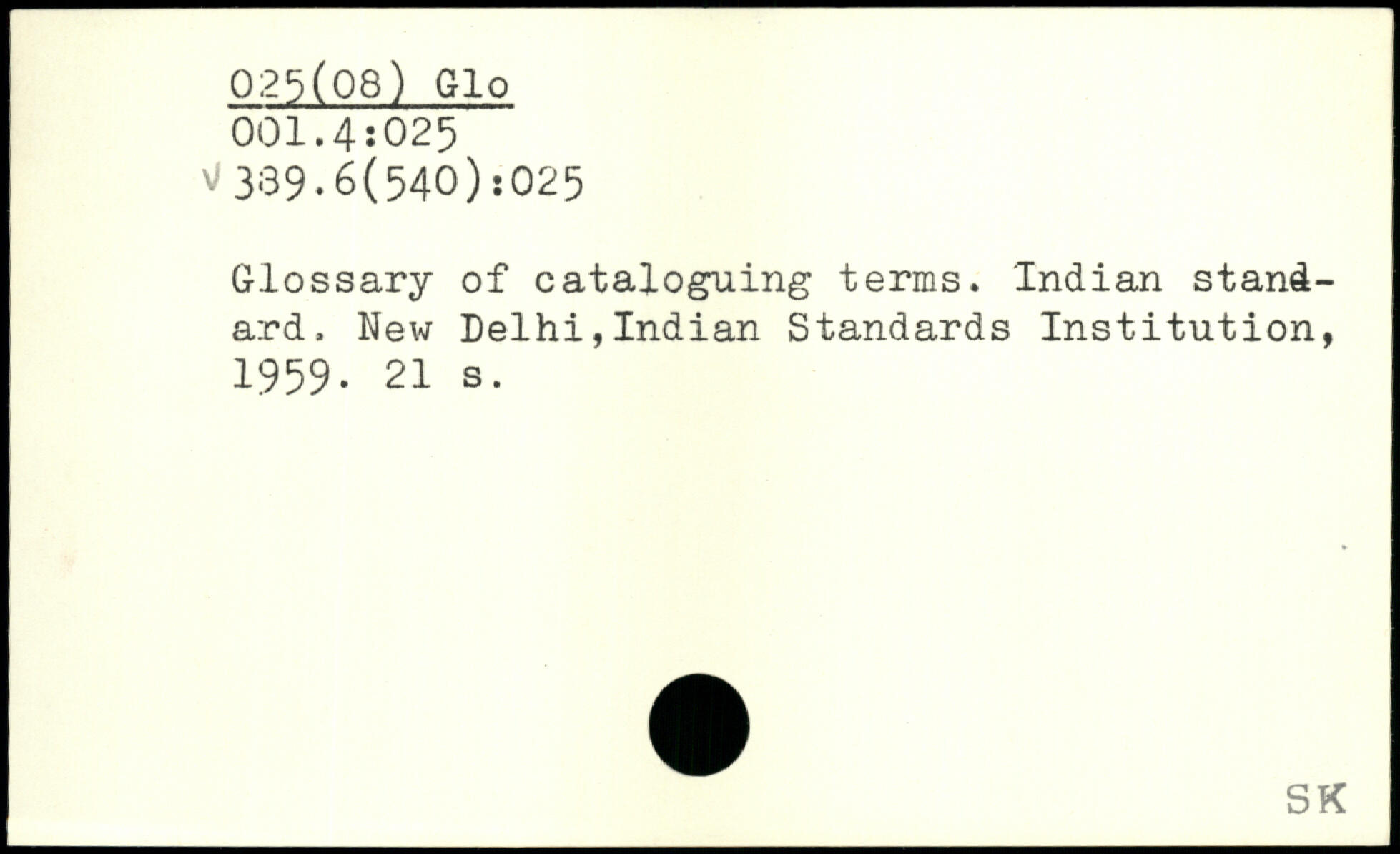Glossary of cataloguing terms. Indian standard.