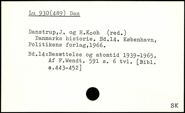Danstrup,J. og H.K0ch (red.) Danmarks historie, Bd,14.