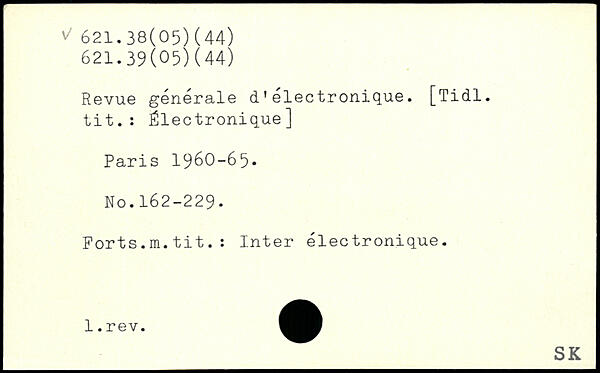 Revue générale d’électronique. [Tidl. tit.: Électronique]