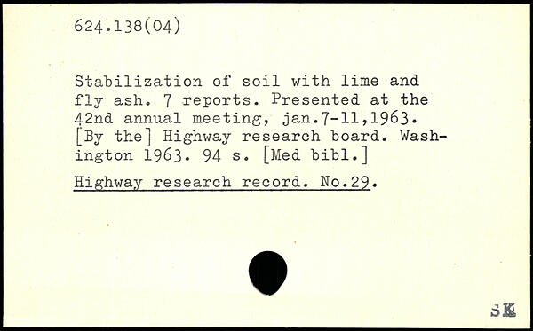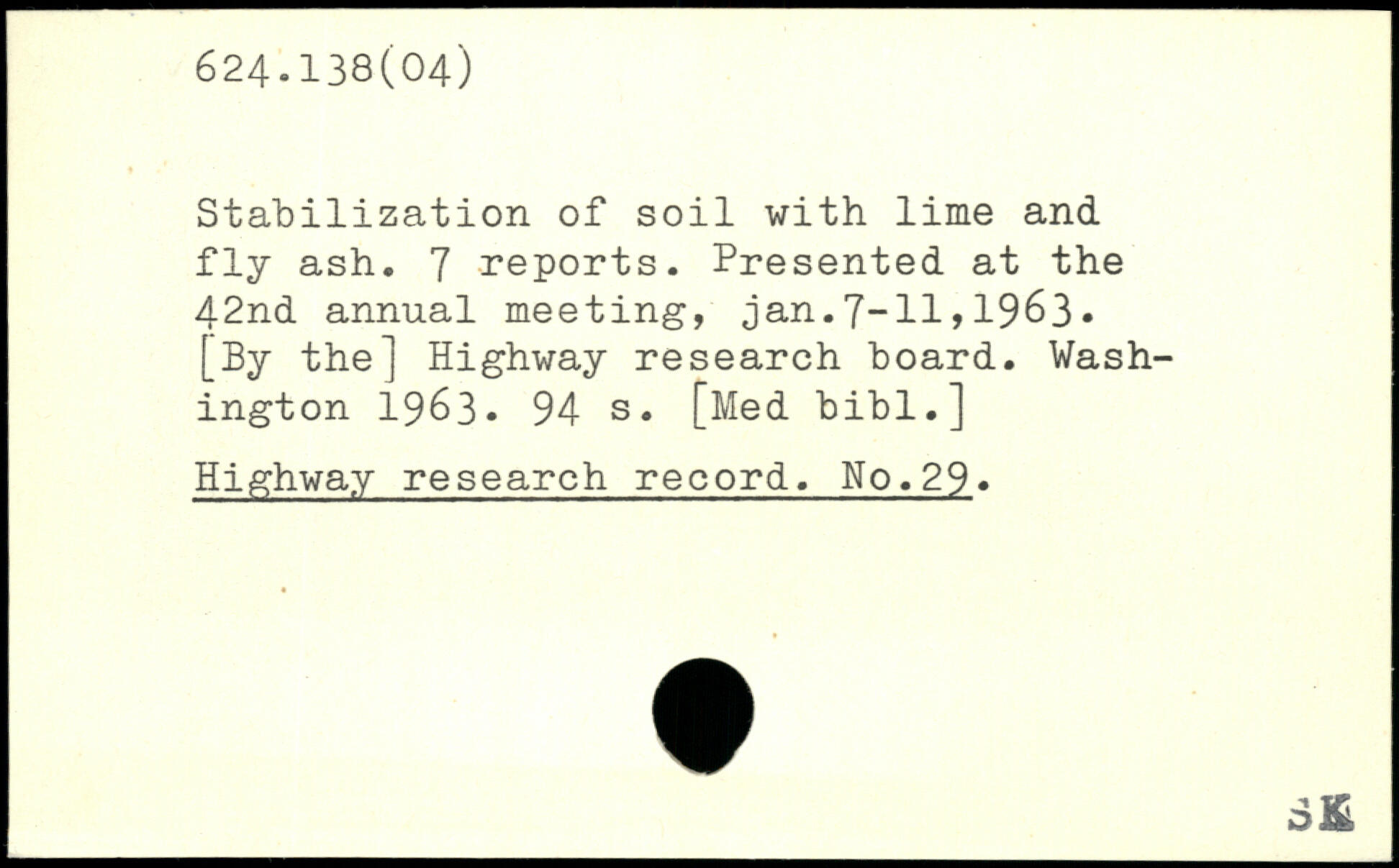 Stabilization of soil with lime and fly ash. 7 reports. Presented at the 42nd annual meeting, jan.7-11>19^3.