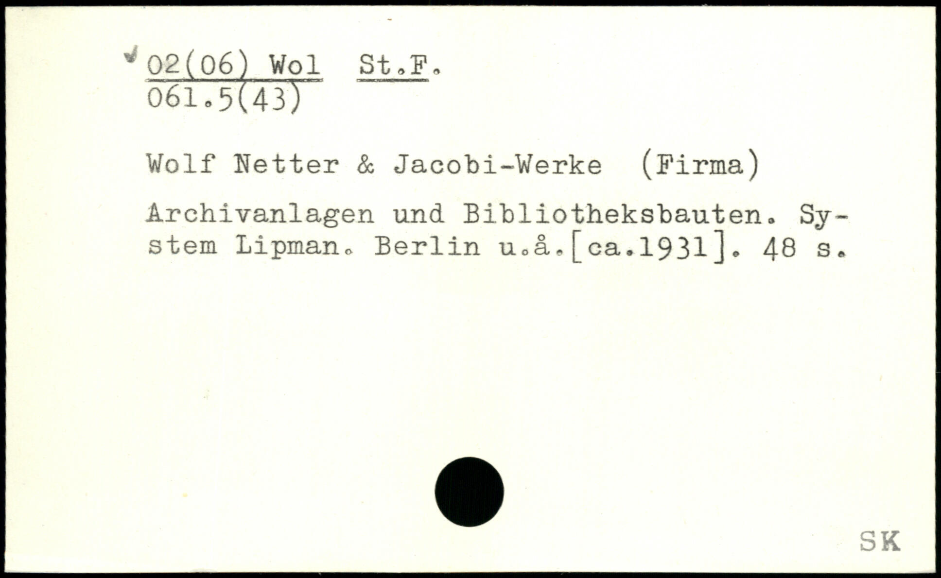 Wolf Netter & Jacobi-Werke (Firma) Archivanlagen und Bibliotheksbauten. System Lipman. Berlin u.å.[ca. 1931].