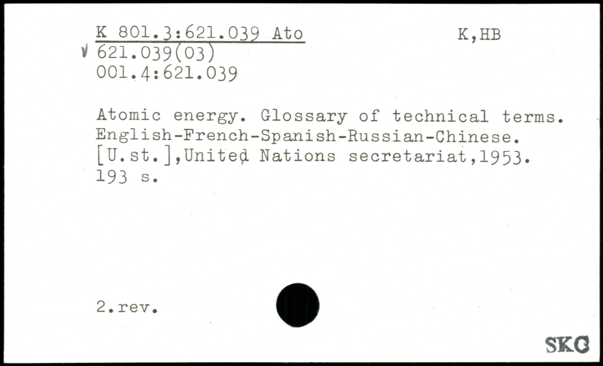Atomic energy. Glossary of technical terms. English-French-Spanish-Russian-Chinese.