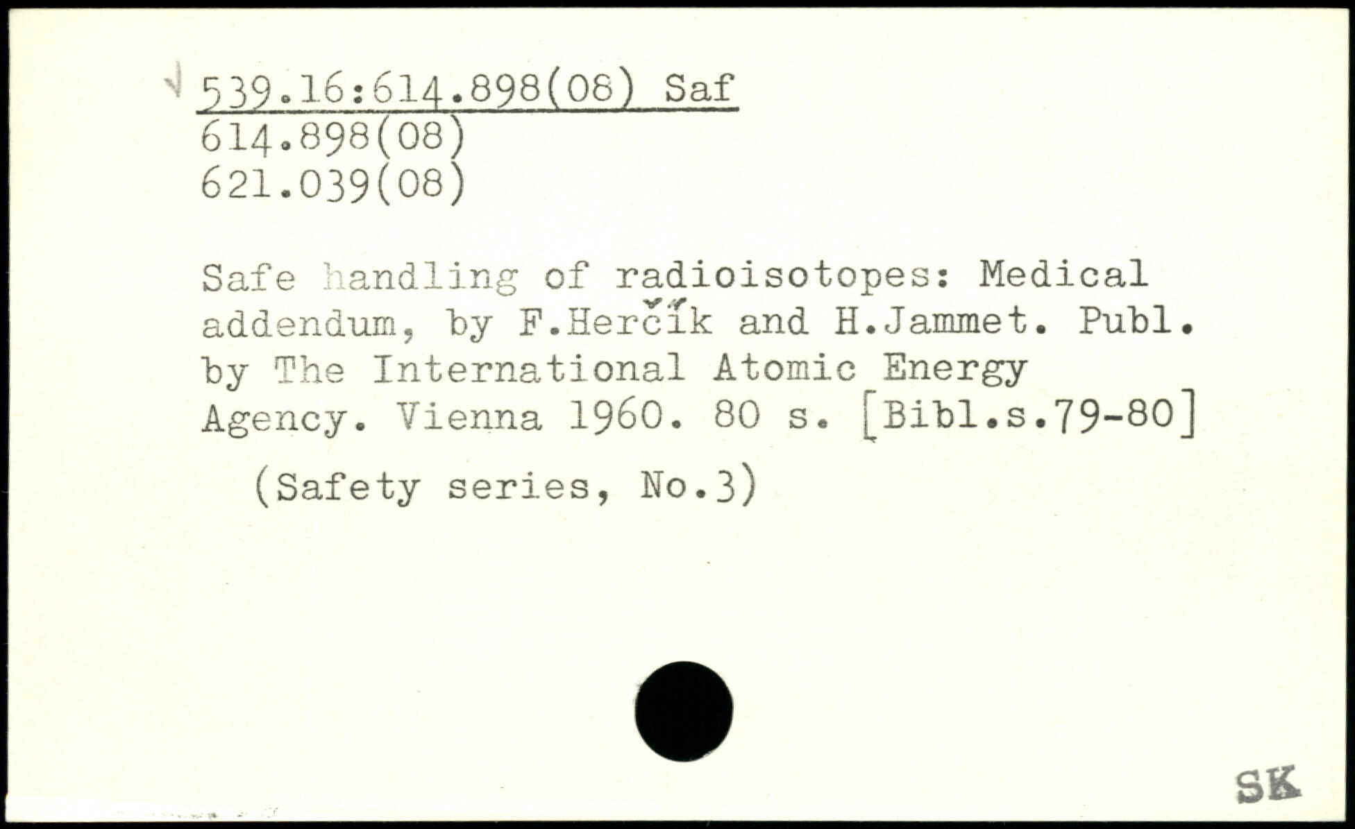 Safe handling of radioisotopes: Medical addendum, by F.Hercik and H.Jainmet.
