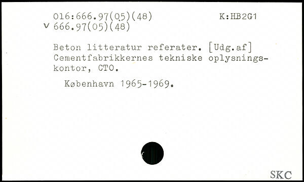 Beton litteratur referater. [Uclg.af] Cementfabrikkernes tekniske oplysningskontor, CTO.