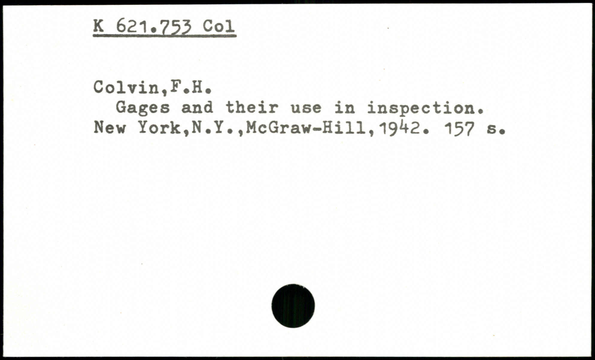 Gages and their use in inspection. New York,N.Y.,McGraw-Hill,19^2.