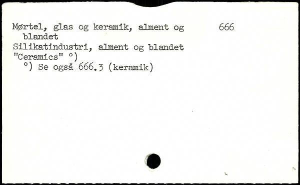 Mørtel, glas og keramik, alment og 666 tlandet Silikatindustri, alment og blandet "Ceramics" .) .) Se også 666.3 (keramik)