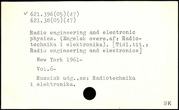 Radio engineering and electronic physics. (Engelsk overs.af: Radio-technika i elektronika). [Tial.tit.: Radio engineering and electronics]