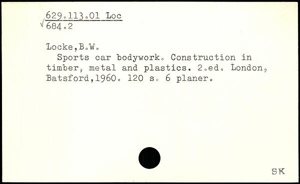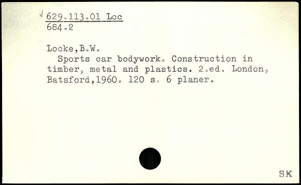 Sports car bodywork. Construction in timber9 metal and plastics.