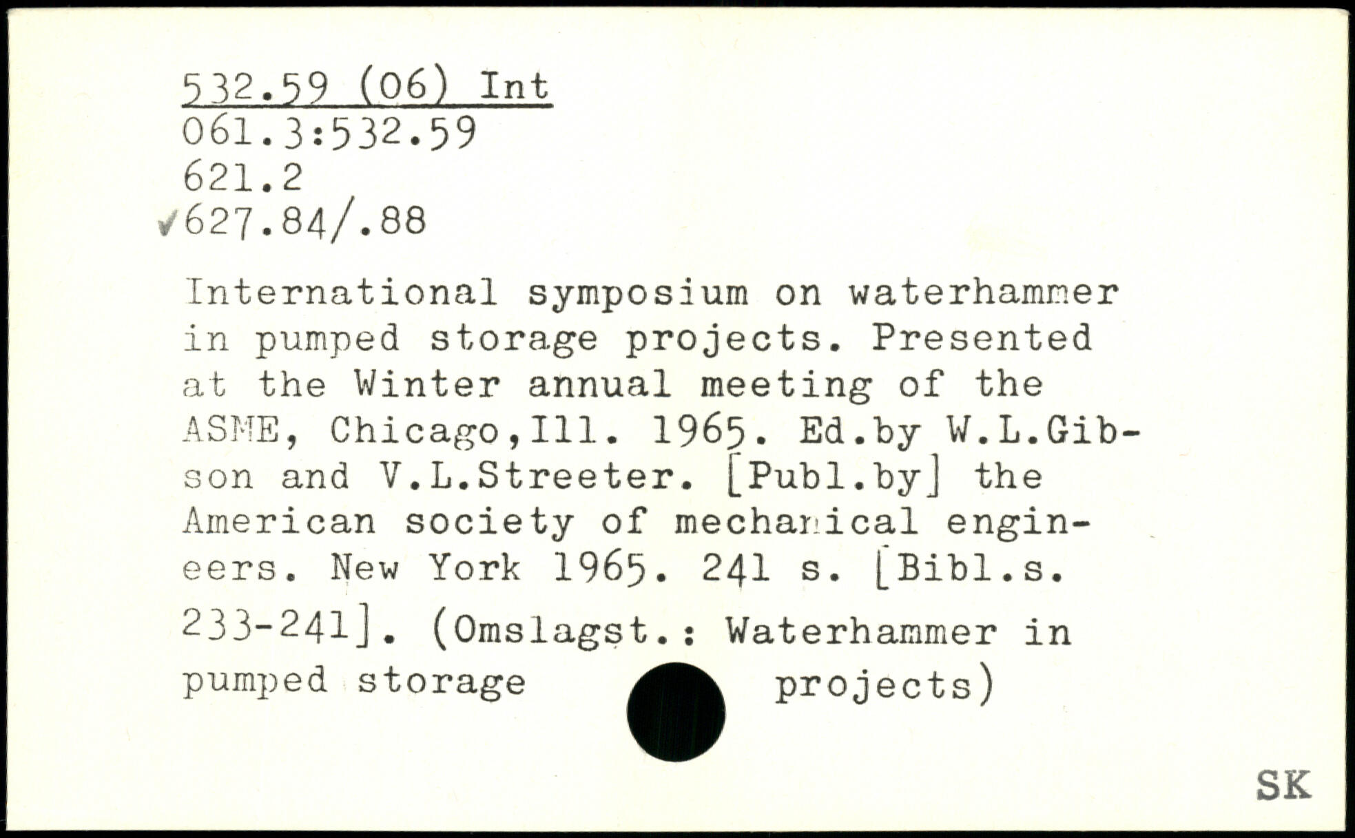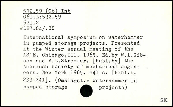 International symposium on waterhamner in pumped storage projects. Presented at the Winter annual meeting of the ASME, Chicago,111. 1965. Ed.by W.L.Gibson and V.L.Streeter.