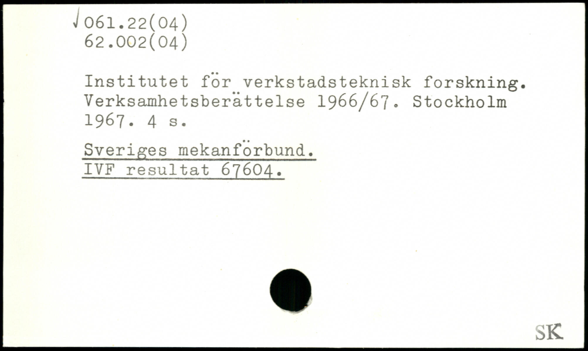 Institutet for verkstads teknisk forskning. Verksamhetsberättelse 1966/67.