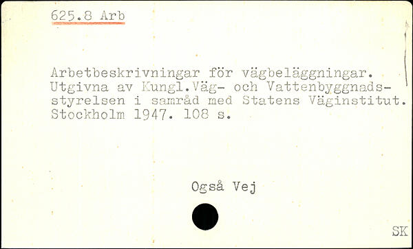 Arbetbeskrivningar för vägbeläggningar. Utgivna av Kungl.Väg- och Vattenbyggnads-styrelsen i samråd med Statens Väginstitnt.