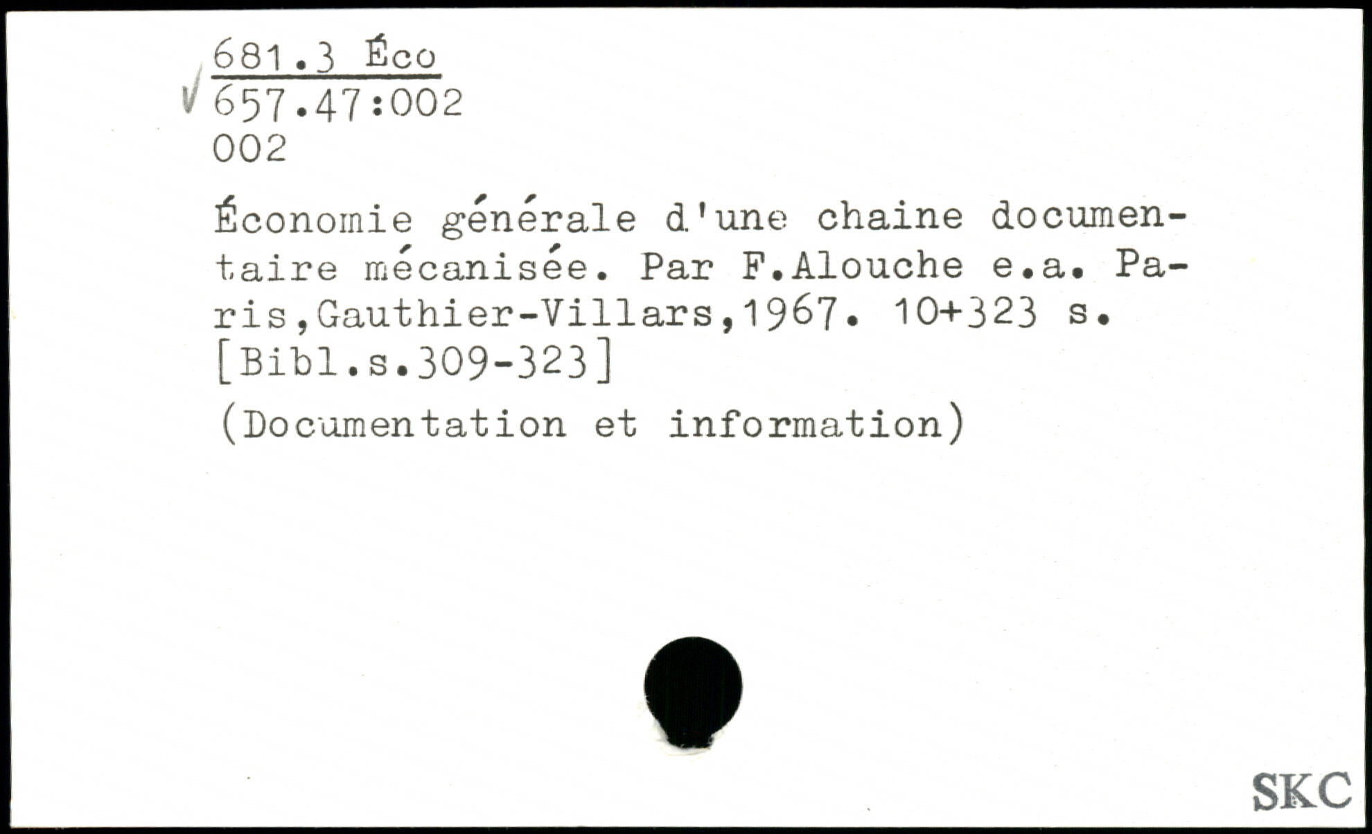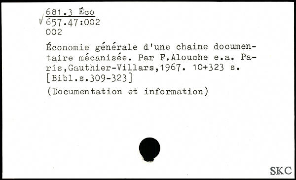 Économie générale d'une chaine documentaire mécanisée. Par F.Alouche e.a.