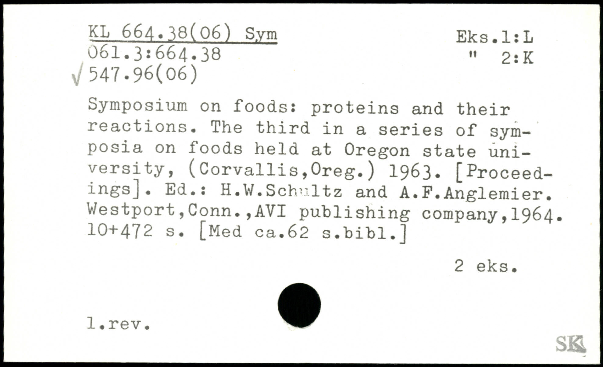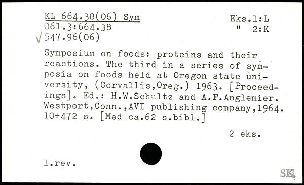 Symposium on foods: proteins and their reactions. The third in a series of symposia on foods held at Oregon state university, (Corvallis,Oreg.) 1963. [Proceedings]. Ed.: H.W.Schultz and A.F.Anglemier.