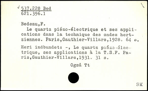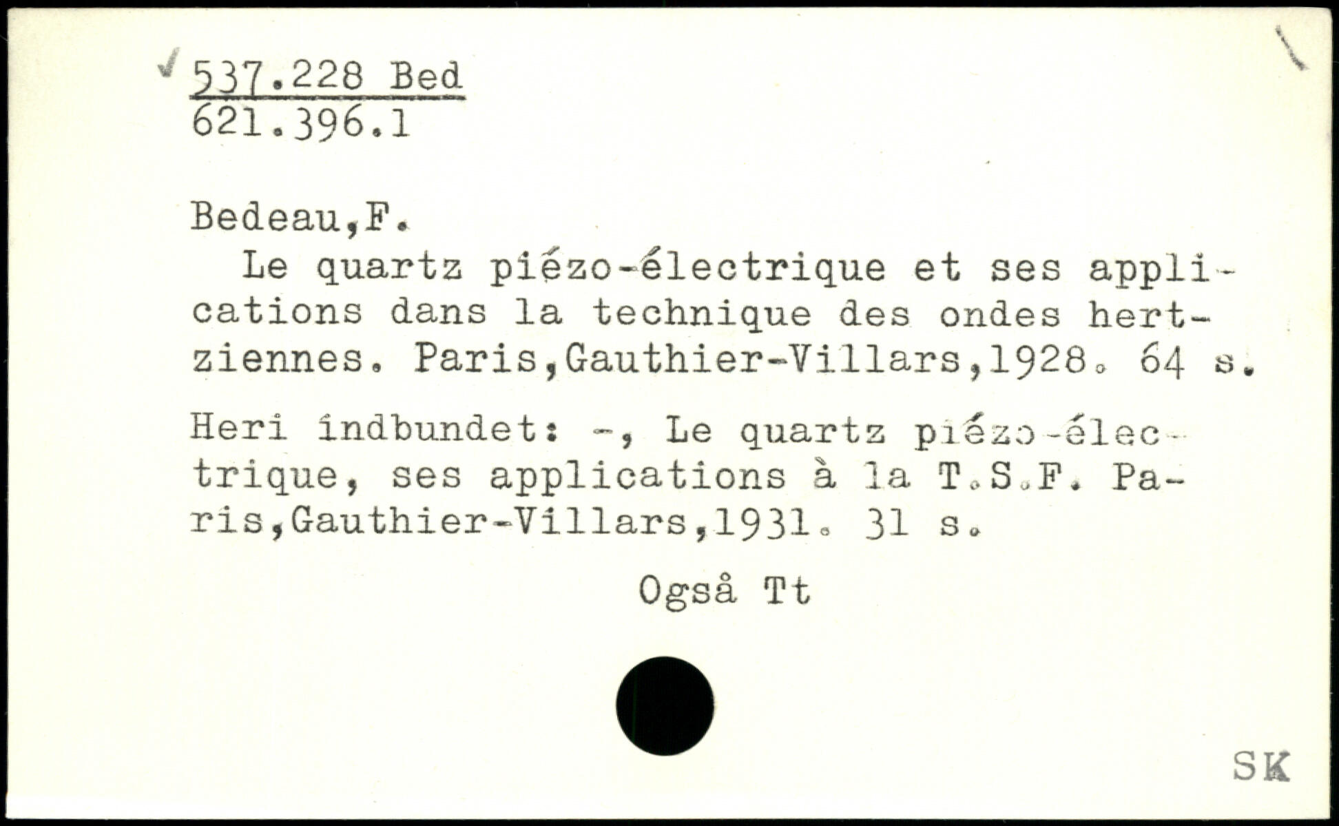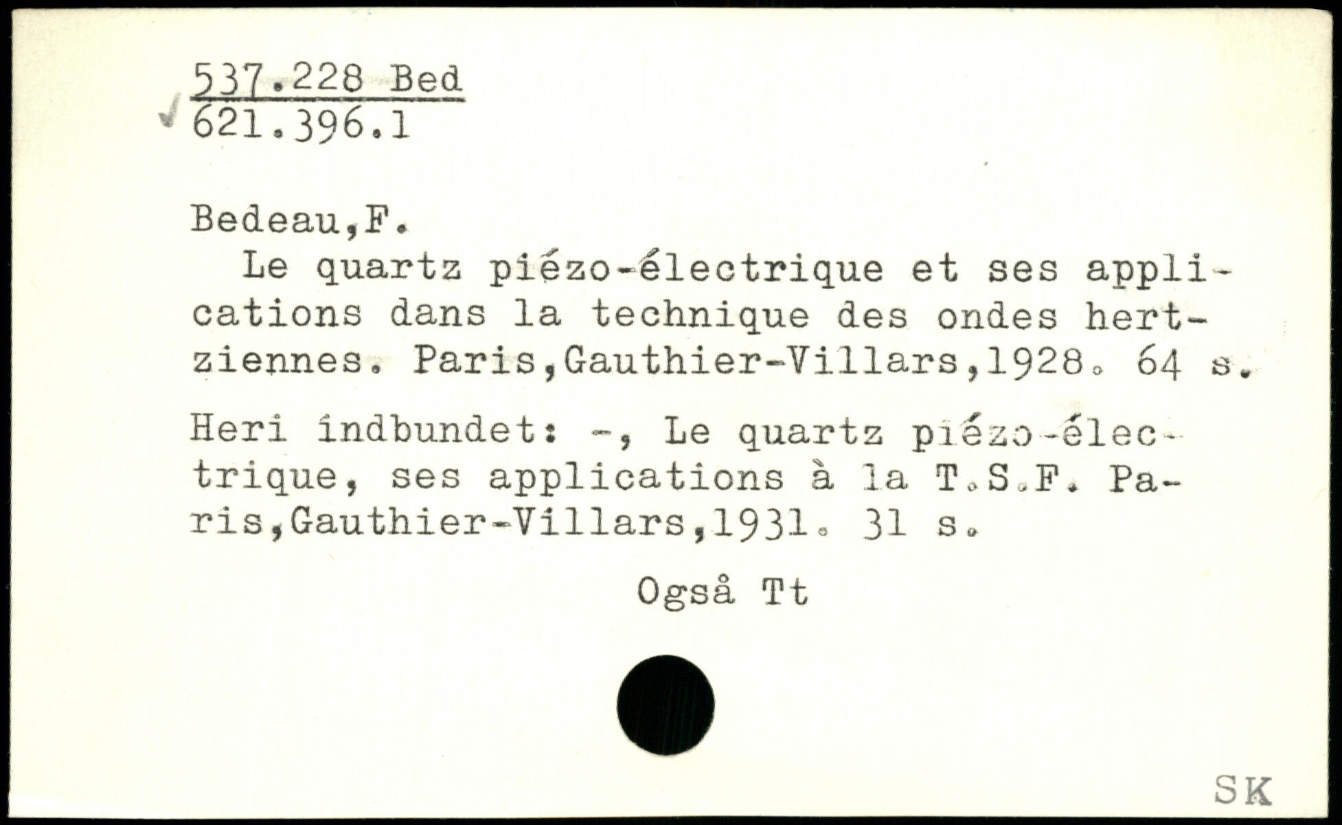 Le quartz piézo-électrique et ses applications dans la technique des ondes hertziennes.
