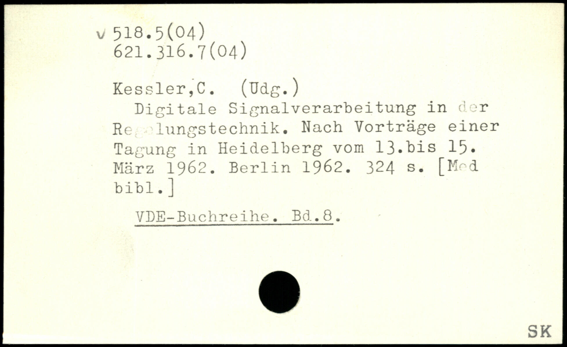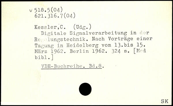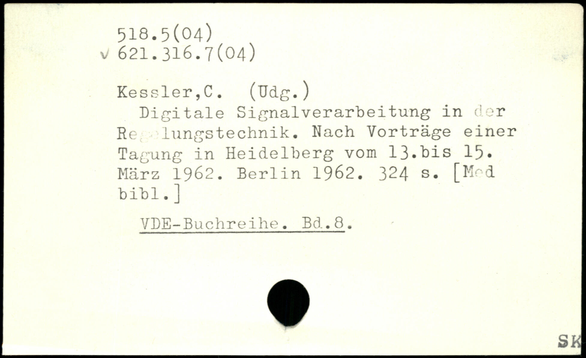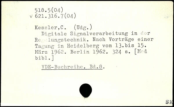 Digitale Signalverarbeitung in der Re. lungstechnik. Nach Vorträge einer Tagung in Heidelberg vom 13."bis 15. März 1962.