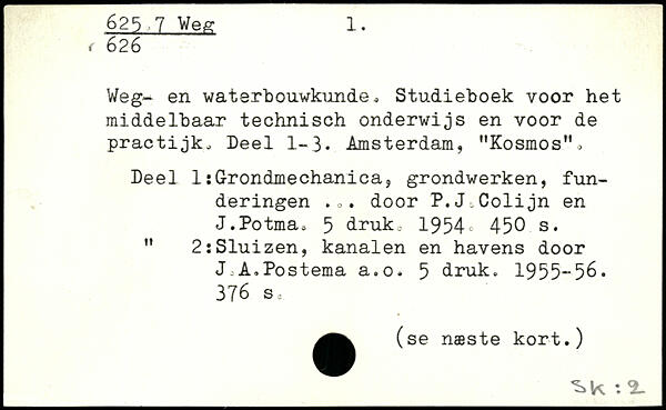 Weg- en waterbouwkunde, Studieboek voor het raiddelbaar technisch onderwijs en voor de practijk, Deel 1-3. Amsterdam, "Kosmos". Deel 1:Grondmechanica, grondwerken, funderingen .0. door P.J.Colijn en J.Potma. 5 druk. 1954