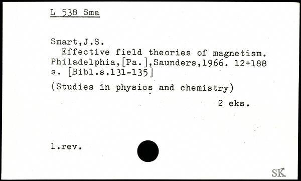 Effective field theories of magnetism. Philadelphia,[Pa.],Saunders,1966.