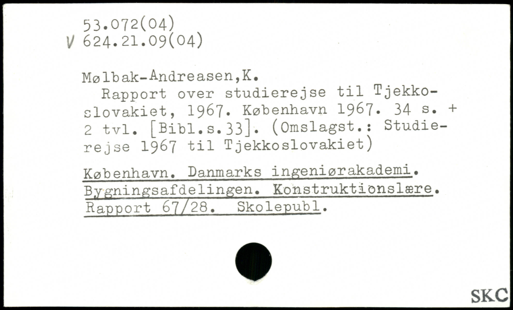 Rapport over studierejse til Tjekkoslovakiet, 1967.