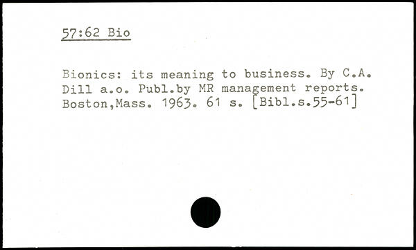 Bionics: its meaning to business. By C.A. Dill a.o.
