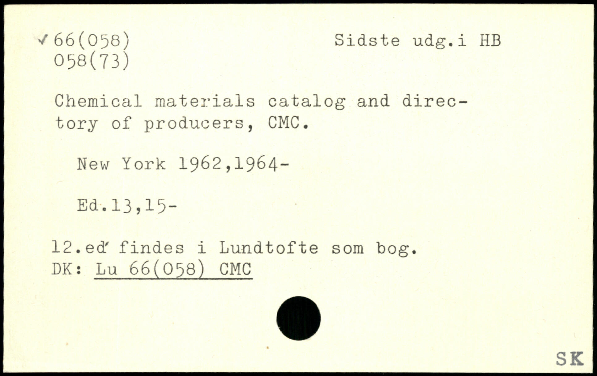 Chemical materials catalog and directory of producers, CMC.