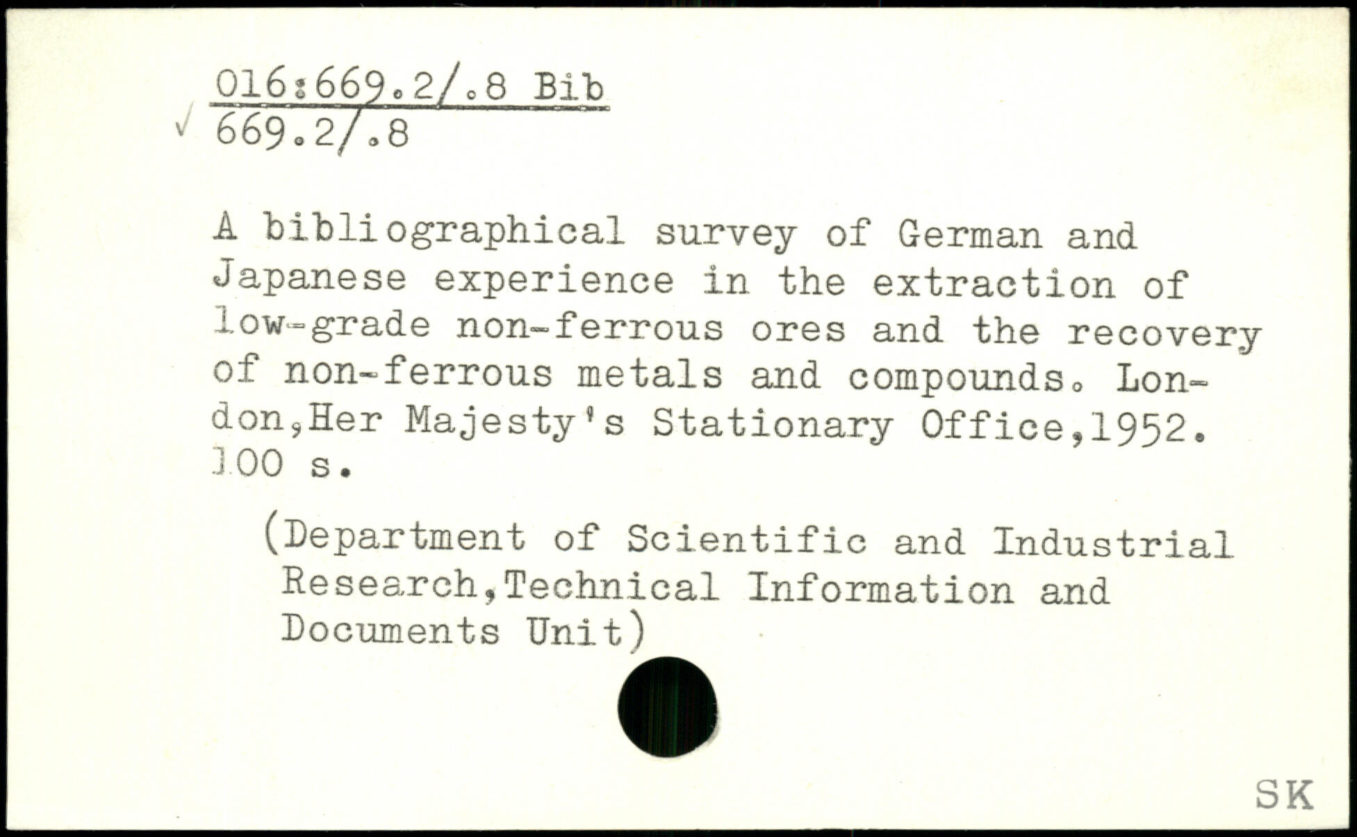 A bibliographical survey of German and Japanese experience in the extraction of low-grade non-ferrous ores and the recovery of non-ferrous metals and compounds, Londoner Majesty’s Stationary Office,1952. 3