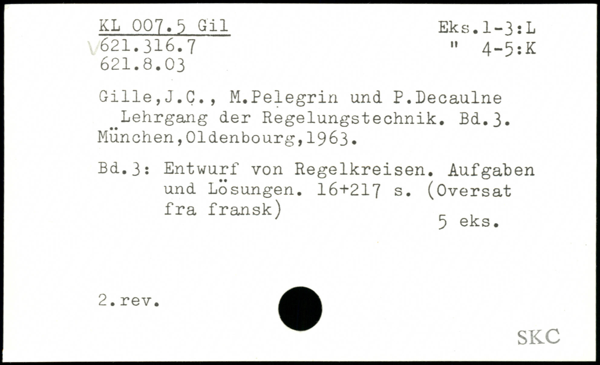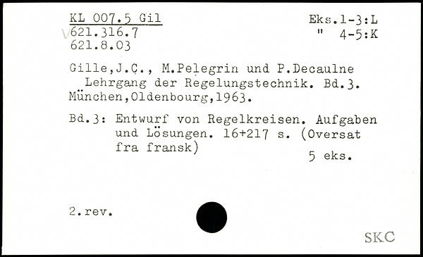 Gille,J.Ç., M.Pelegrin und. P.Lecaulne Lehrgang der Regelungstechnik.