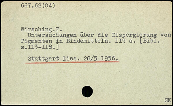 Untersuchungen über die Dispergierung von Pigmenten in Bindemitteln.