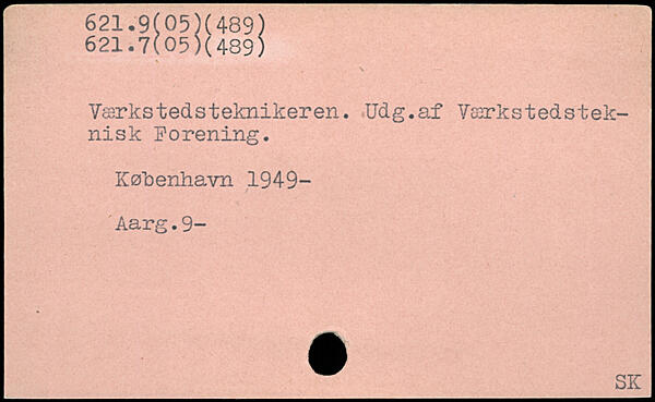 Värkstedsteknikeren. Udg.af V&rkstedstek-nisk Förening. Kobenhavn 1949- Aarg.9- _^_SK