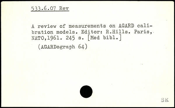 A review of measurements on AGARD calibration models. Editor: R.Hills.