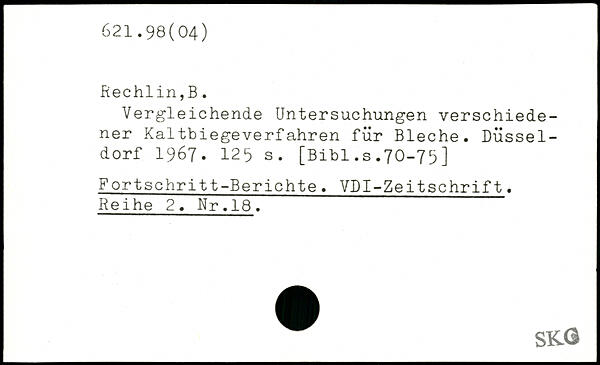 Vergleichende Untersuchungen verschiedener Kaltbiegeverfahren für Bleche. Düsseldorf 1967.