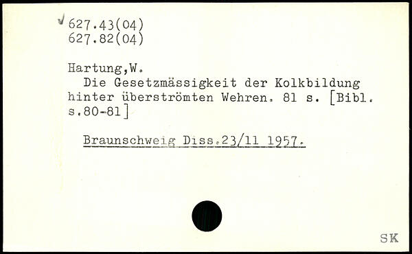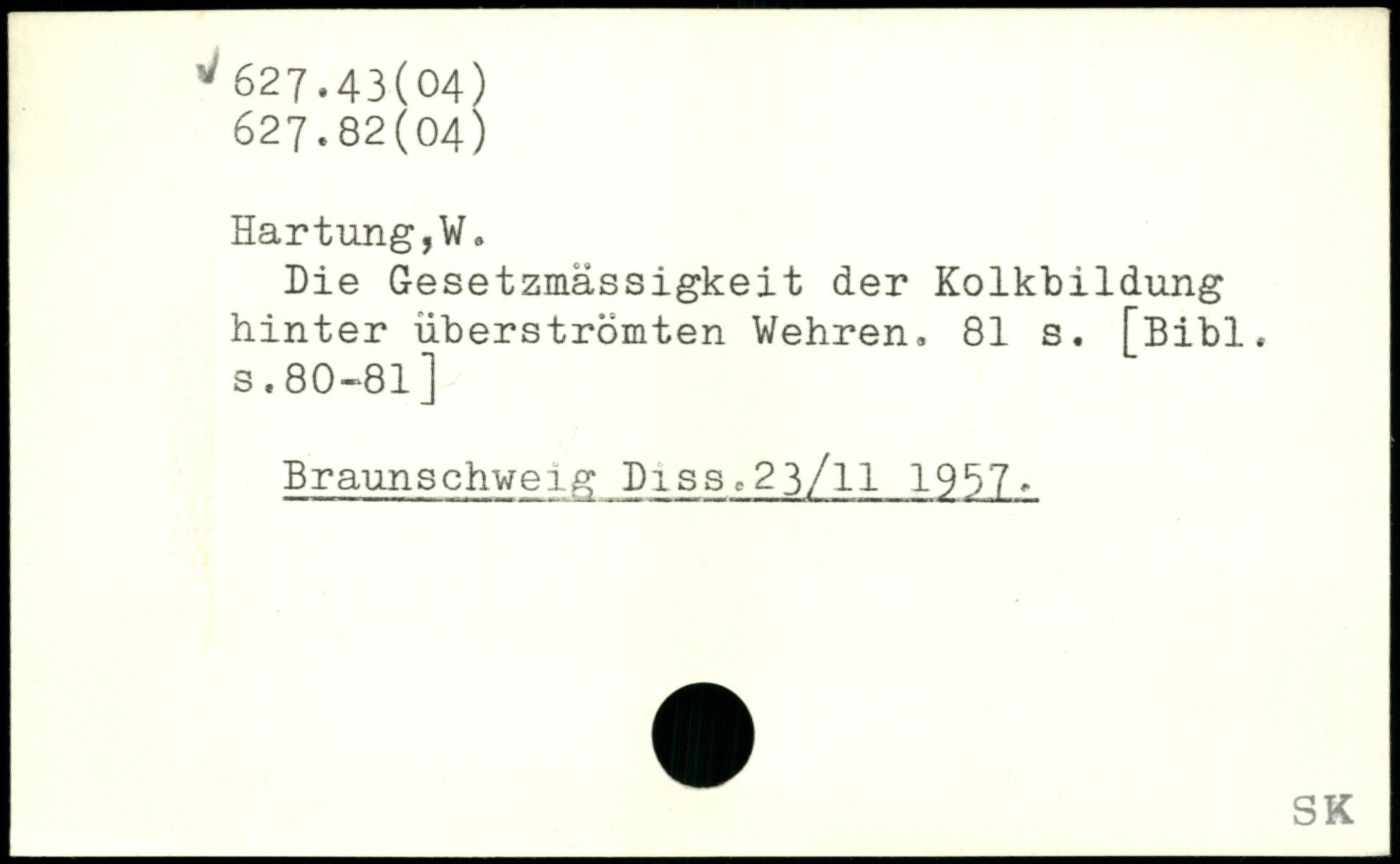 Hie Gesetzmässigkeit der Kolkbildung hinter überströmten Wehren