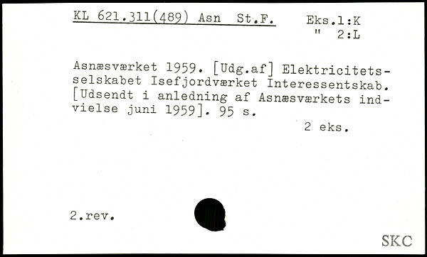 Asnæsværket 1959. [Udg.af] Elektricitetsselskabet Isefjordværket Interessentskab. [Udsendt i anledning af Asnæsværkets indvielse juni 1959].