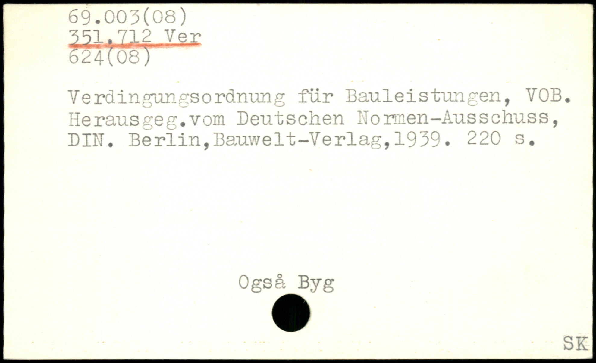 VerdingungsOrdnung für Bauleistrugen, YOB. Herausgeg.vom Deutschen Normen-Ausschuss, DIN.