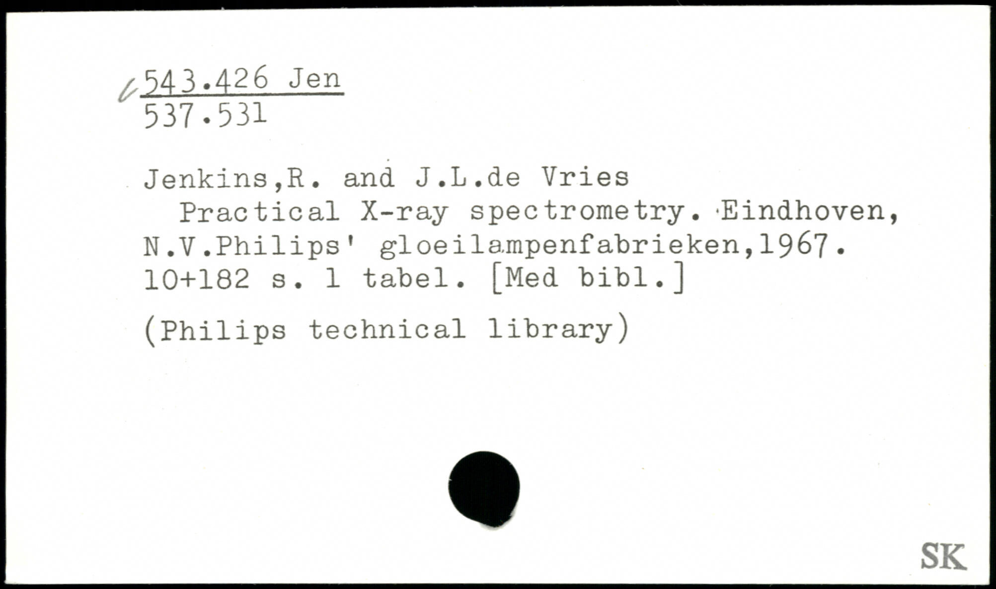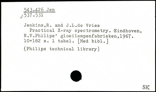 Jenkins,R. and J.L.de Vries Practical X-ray spectrometry. 'Eindhoven, N.V.Philips 1 gloeilampenfabrieken,1967.