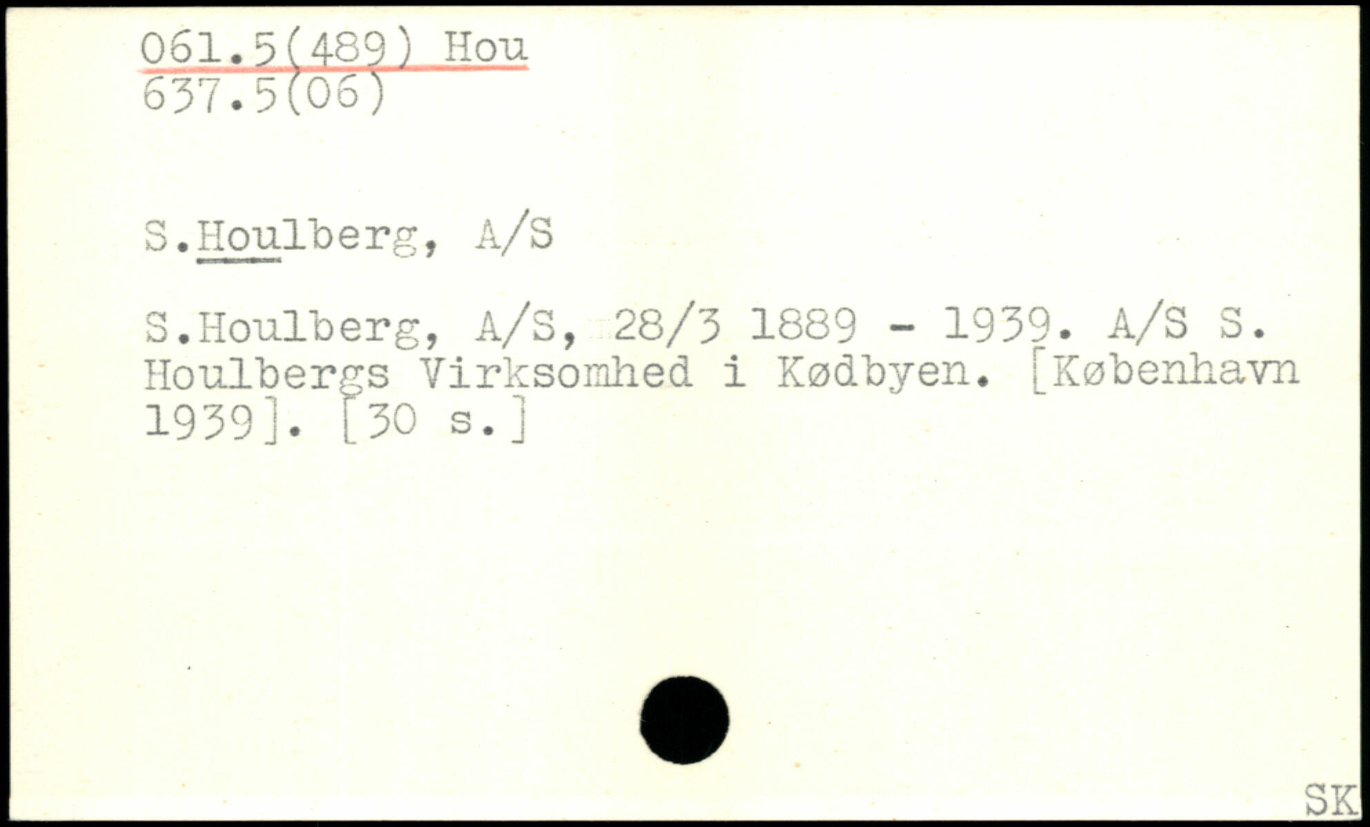 S.Houlberg, A/S S.Houlberg, A/S, 28/3 1889 - 1939. A/S S. Houlbergs Virksomhed i Kødbyen.