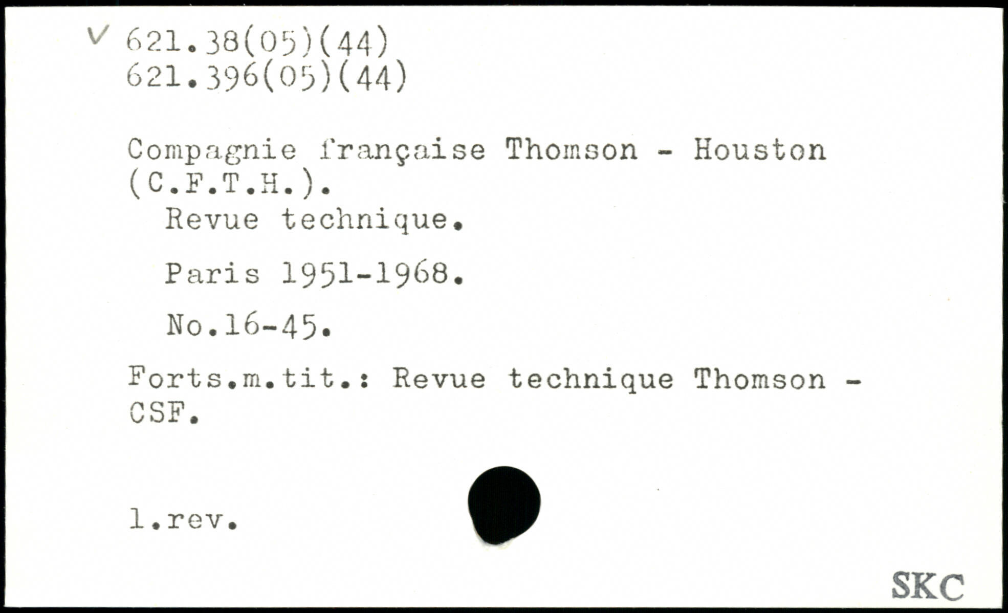 Compagnie française Thomson - Houston Revue technique.