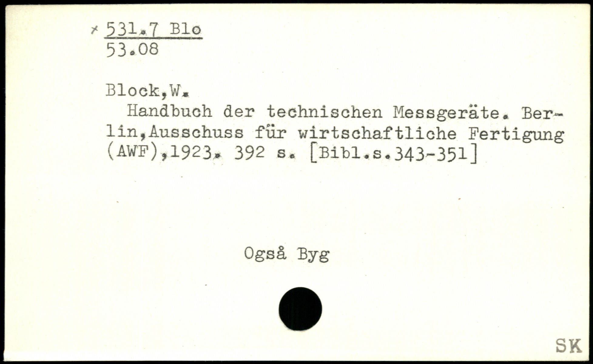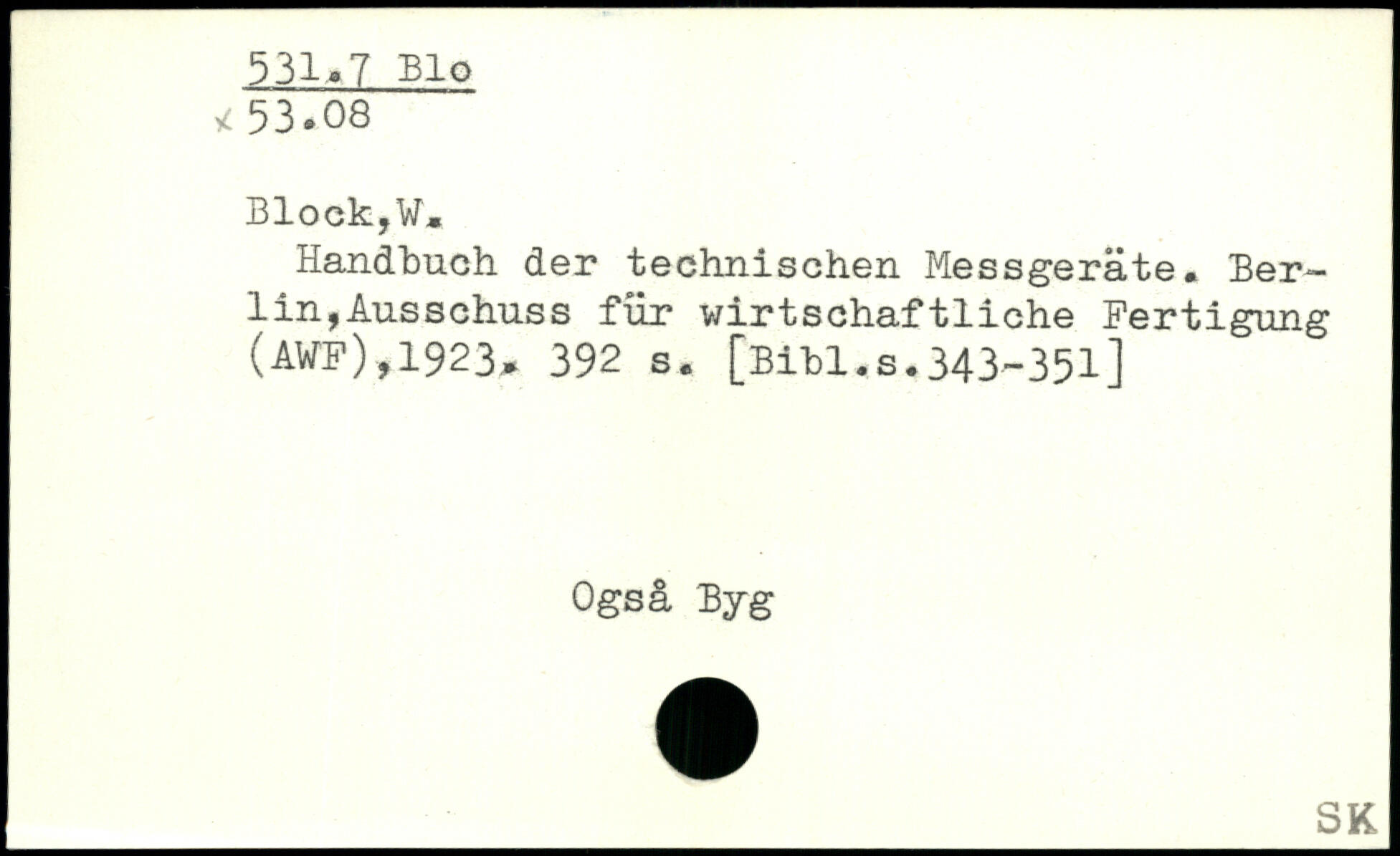 Handbuch der technischen Messgeräte. Berlin, Ausschuss für wirtschaftliche Fertigung (AWF),1923.