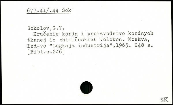 Krucenie korda i proizvodstvo kordnych :| tkanej iz chimiceskich volokon. Moskva, Izd-vo "Legkaja industrija",1965.